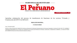 SENACE informó que se publicó la Resolución Misterial que da término al proceso de transferencia